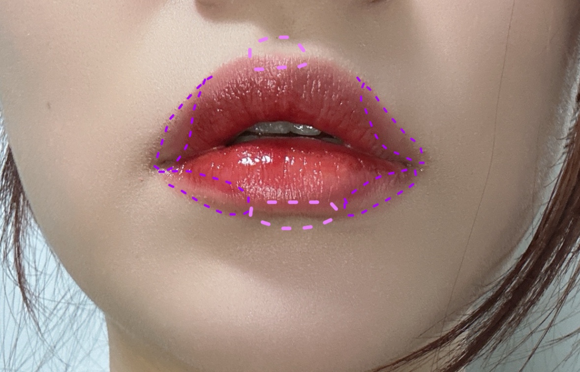 보라색 부분과 연결시켜주면 바로 미국 언니 입술 뚝딱.