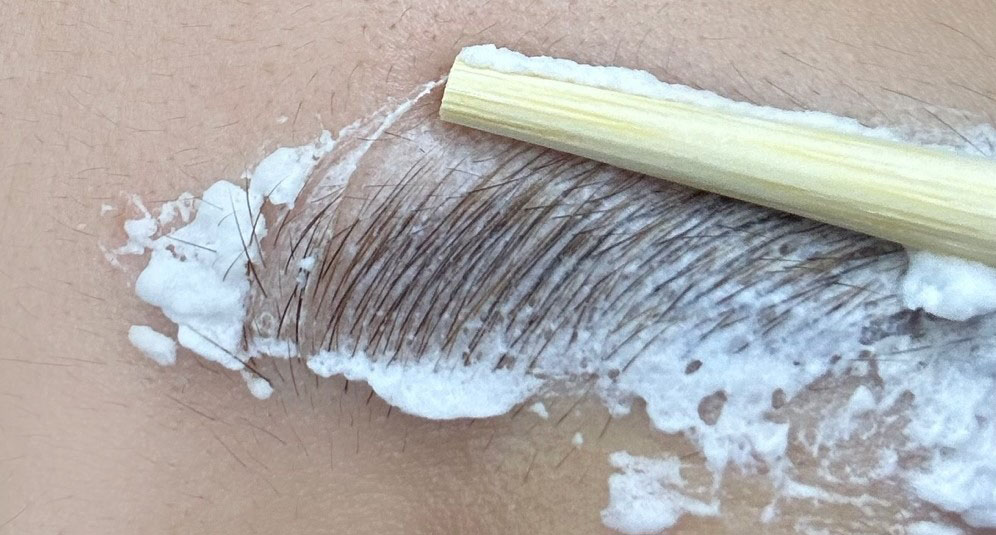 무튼 섞은 탈색제를 좀 묻혀서 눈썹에 바짝 얇게 바릅니다.